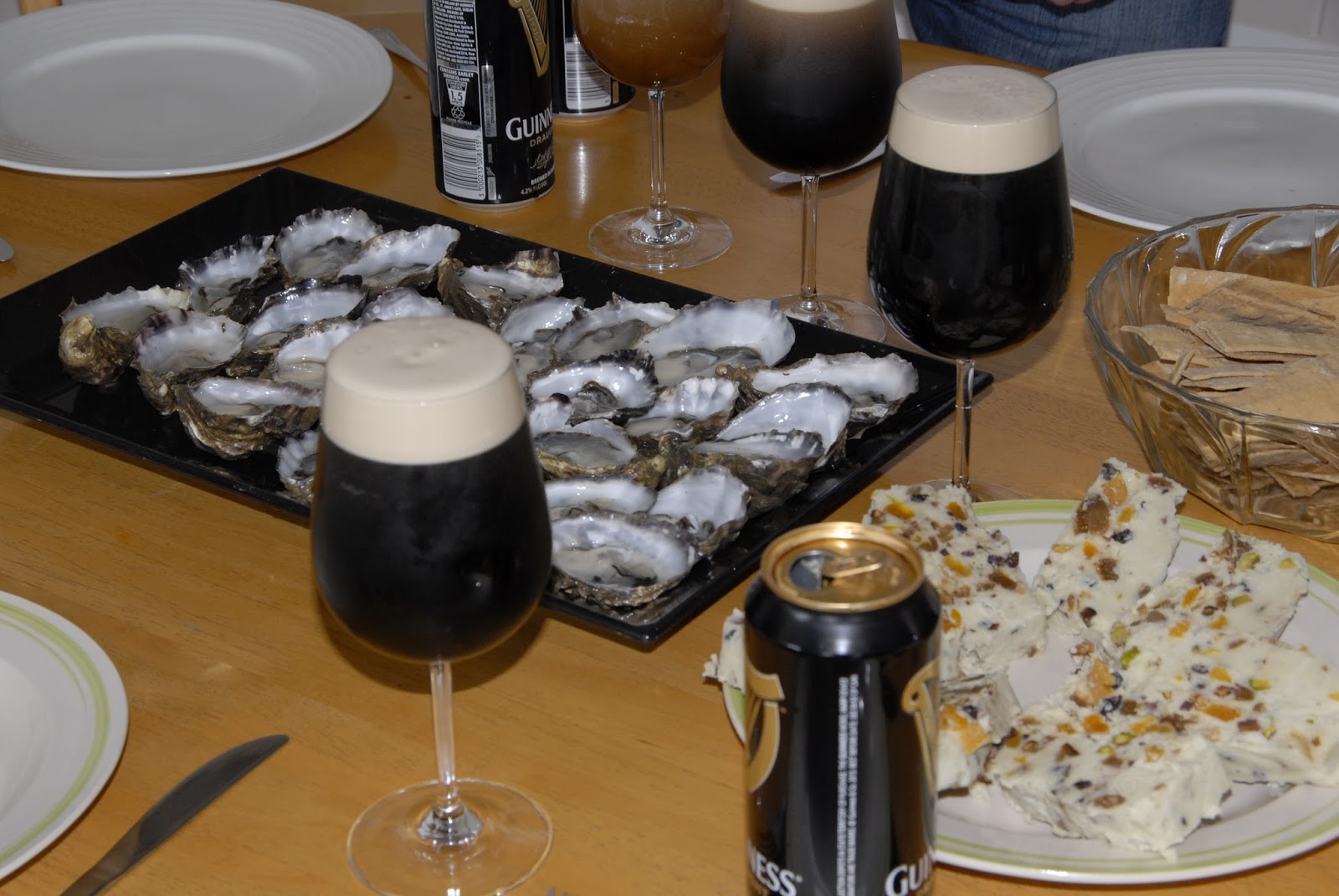 Gorgonzola and fig roulade with oysters (and Guinness, of course!). |