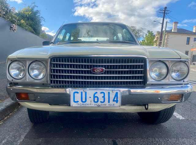 My mate, Mark D, had a white Corona wagon almost identical to this one but slightly earlier, featuring the bonnet-lip grille and rearward bonnet vents. We fitted it with a set of driving lights behind the main grille and hung curtains so that he and his now wife had somewhere private to hold hands and think pure thoughts, as was then a common resort for seventeen and eighteen year-olds still living at home.